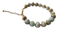 Soft, serene, and naturally grounding — this handmade bracelet by Bahar Sayahsina features smooth, round Amazonite stones in gentle earth and sea tones, elegantly wrapped in gold-toned wire. With textured gold accent beads and a delicate chain closure, this piece radiates calm energy and artisan elegance. Perfect for mindful wearers or lovers of natural beauty.